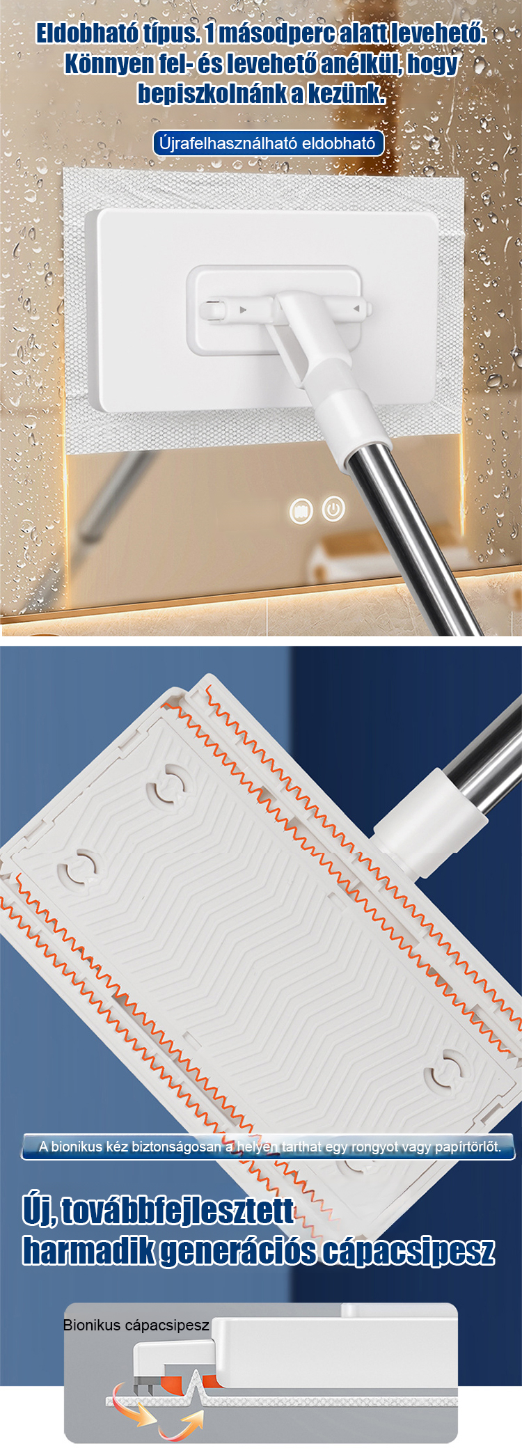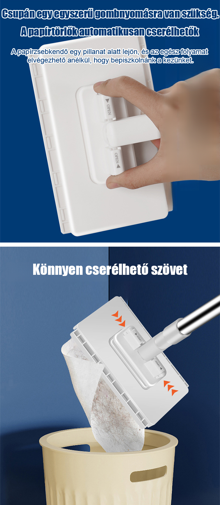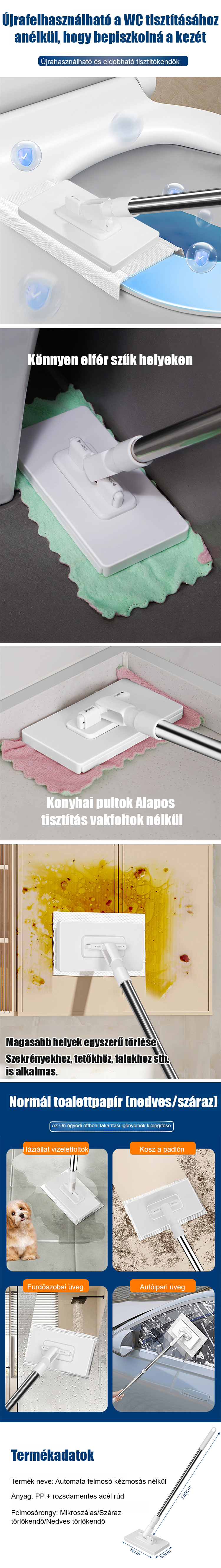 Takarítsd ki az egész otthonodat 5 perc alatt, piszkos kéz és hátfájás nélkül! Nem kell hozzáérned, leöblítened vagy kicsavarnod a szennyezett rongyot takarítás után! Egyszerűen dobd a szemetesbe! Teljesen szüntesd meg a felmosó szagát és a baktériumok szaporodását!