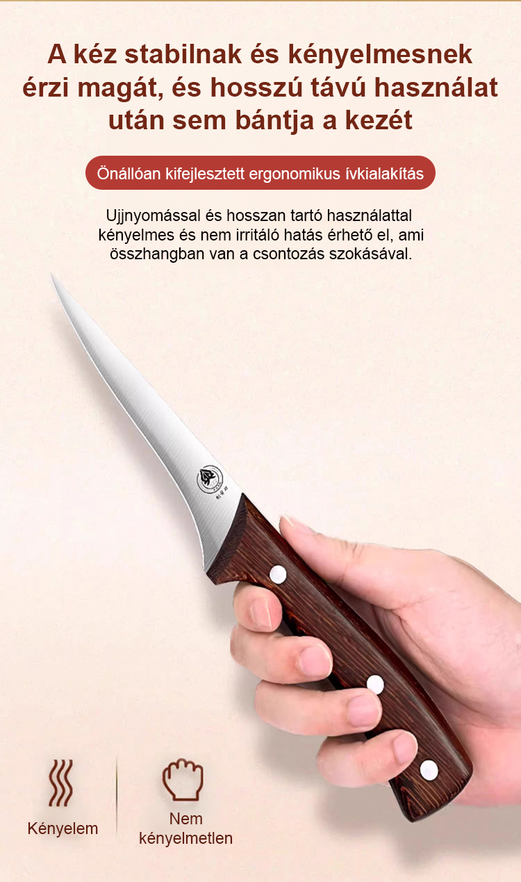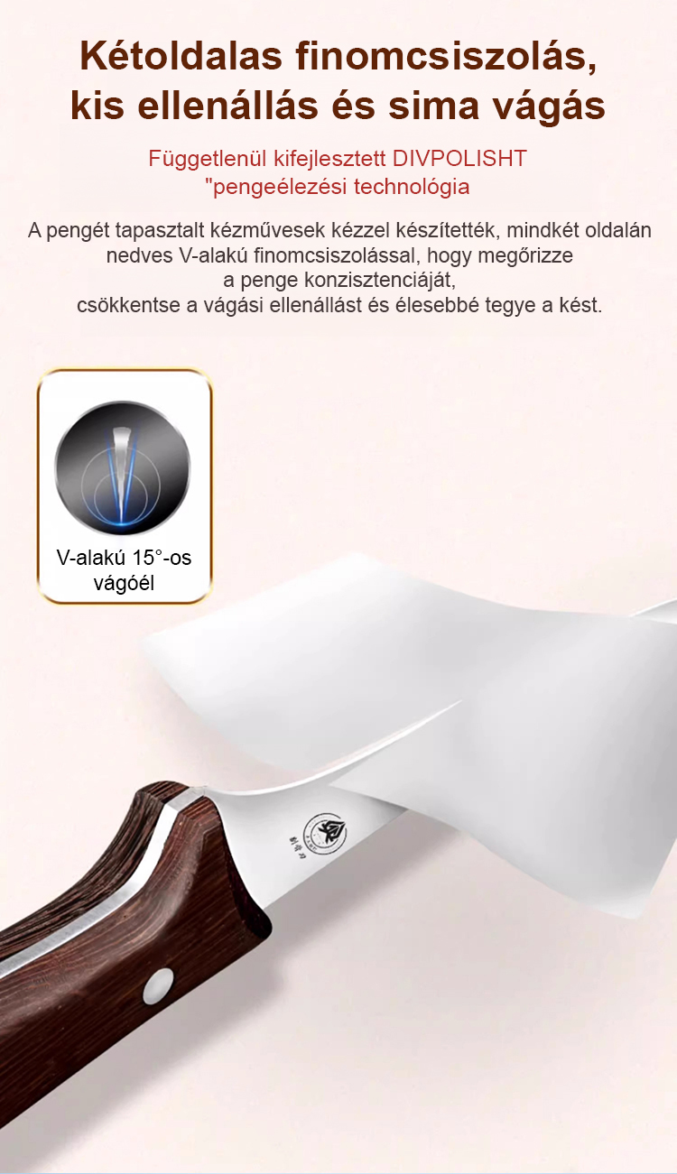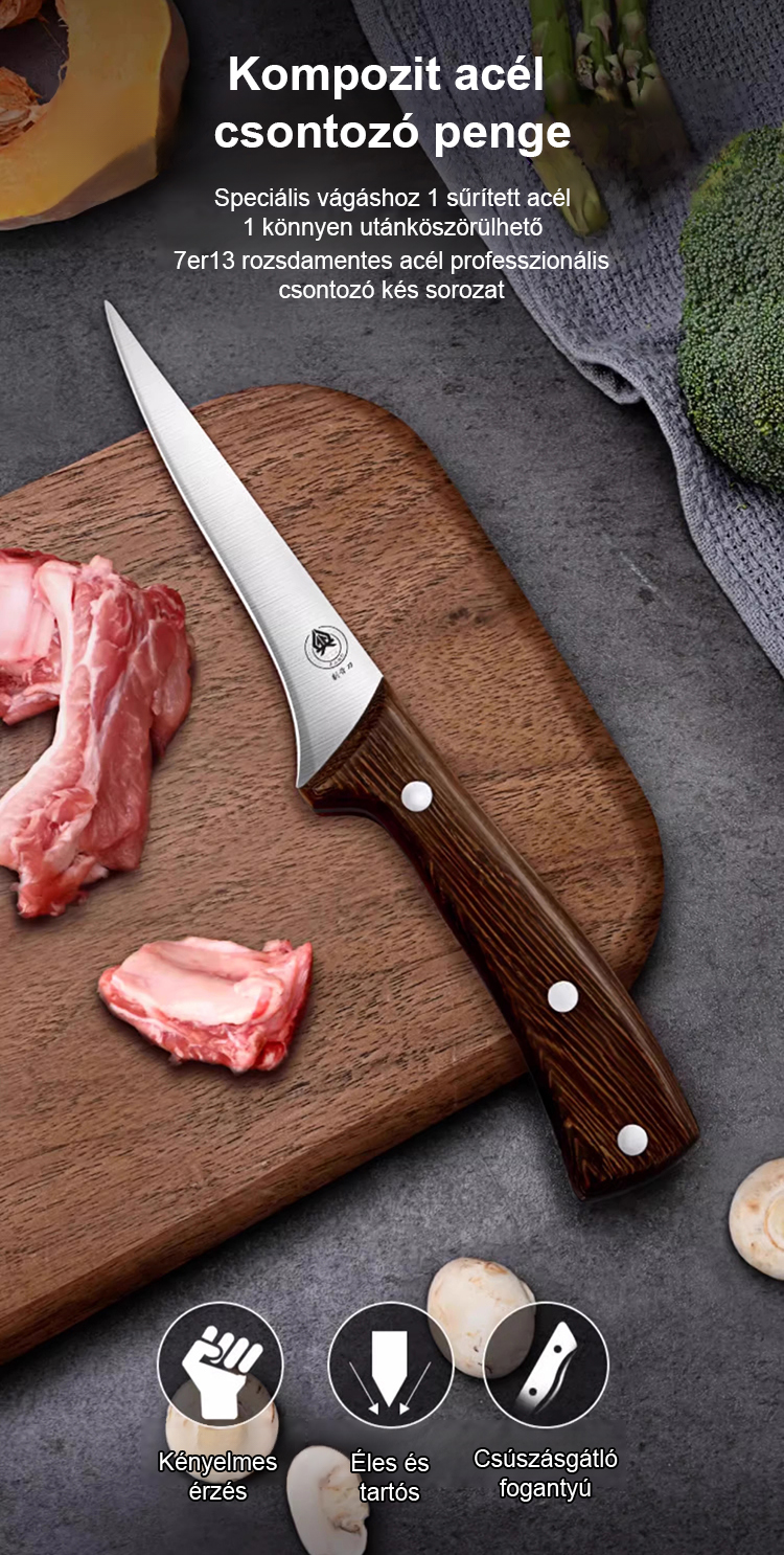 A hagyományos kések pár év után általában eltompulnak? Ez a kés már húsz éve használatban van, csontok és hús vágására is, és még mindig olyan éles, mint új korában!