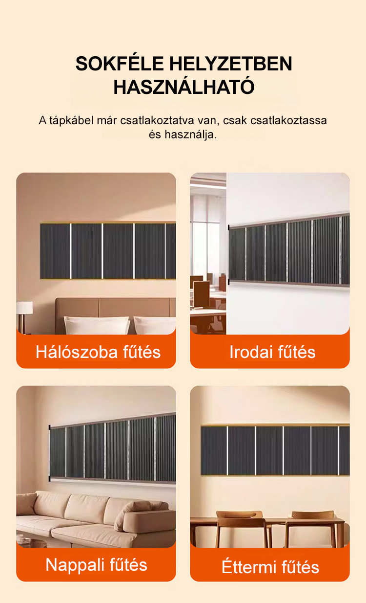 🔥Azonnali meleg! 🔥Elengedhetetlen hősugárzó a télre! 🏠Vízálló és páraálló, így a fürdőszobában is biztonságosan használható. ✅Egyszerű telepítés, csak ragassza fel, és már kész is. ⚡️Napi mindössze 1 kWh áramfogyasztás: kényelmesebb, mint a szénfűtés, és gazdaságosabb, mint a légkondicionáló.